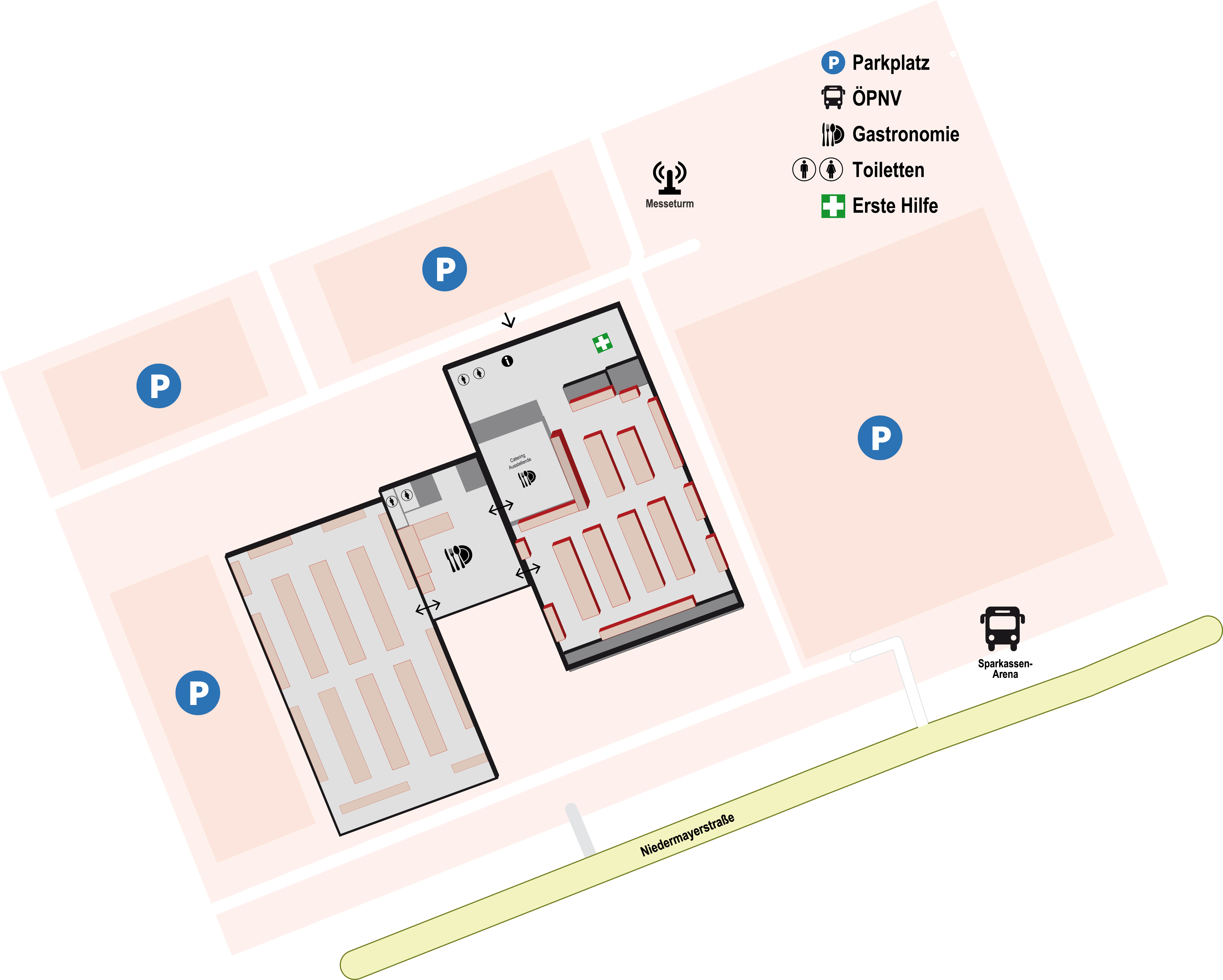 Für Ausstellende stehen ausreichend Parkplätze auf bzw. unmittelbar vor dem Messegelände zur Verfügung. Einen entsprechenden Lageplan finden Sie hier.